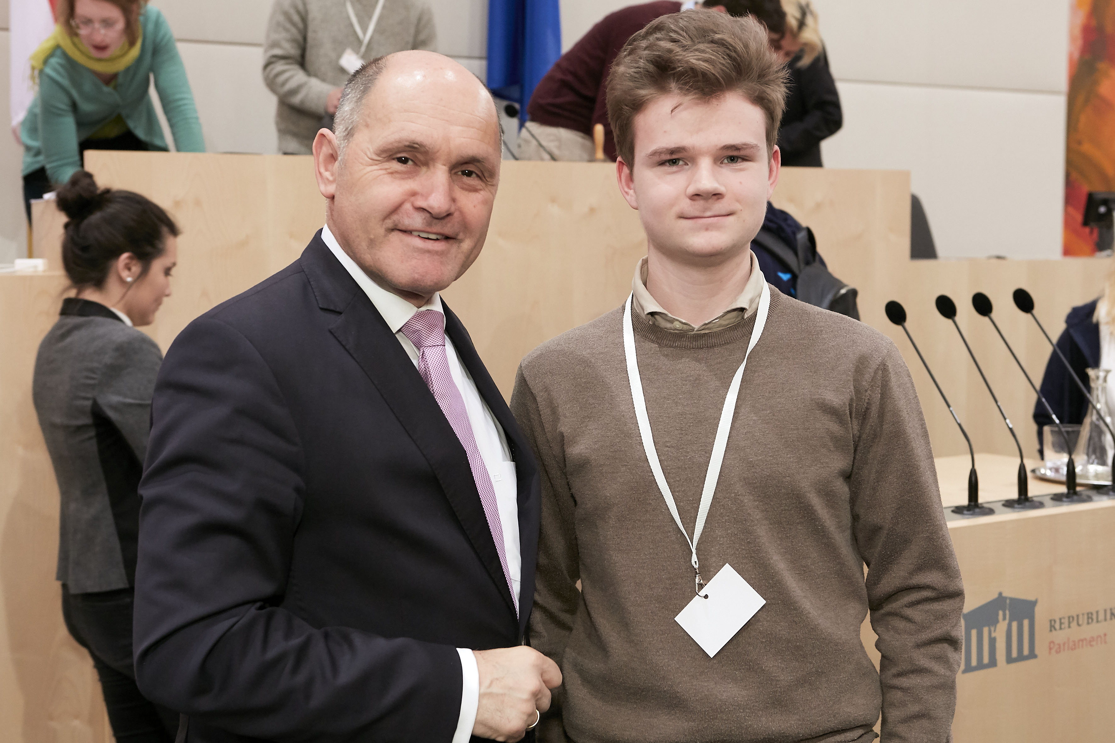 VeranstaltungsteilnehmerInnen mit Nationalratspräsident Wolfgang Sobotka (V)