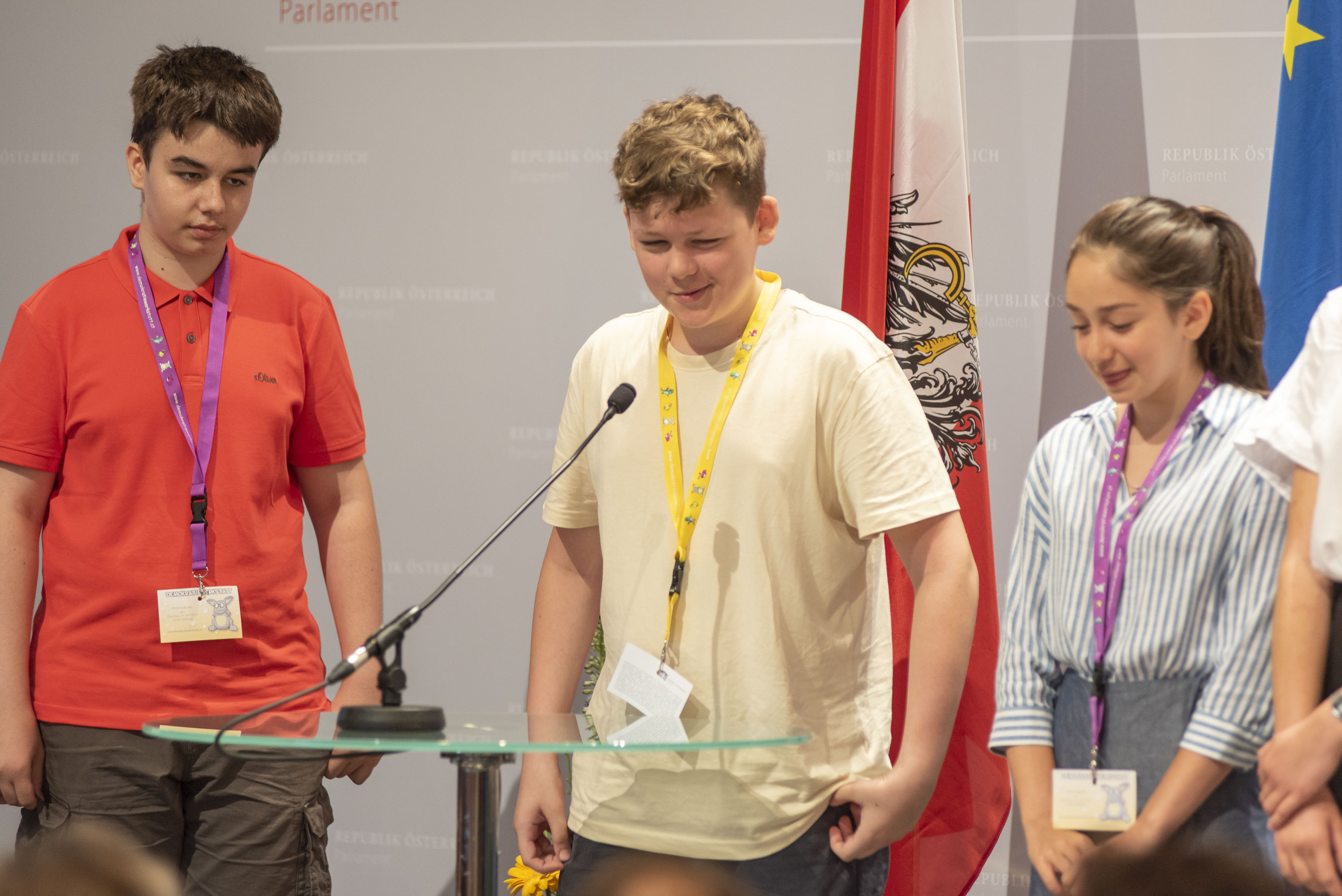 Ehrung der Schulklassen welche vier mal an Demokratiewerkstätten oder Workshops teilgenommen haben.